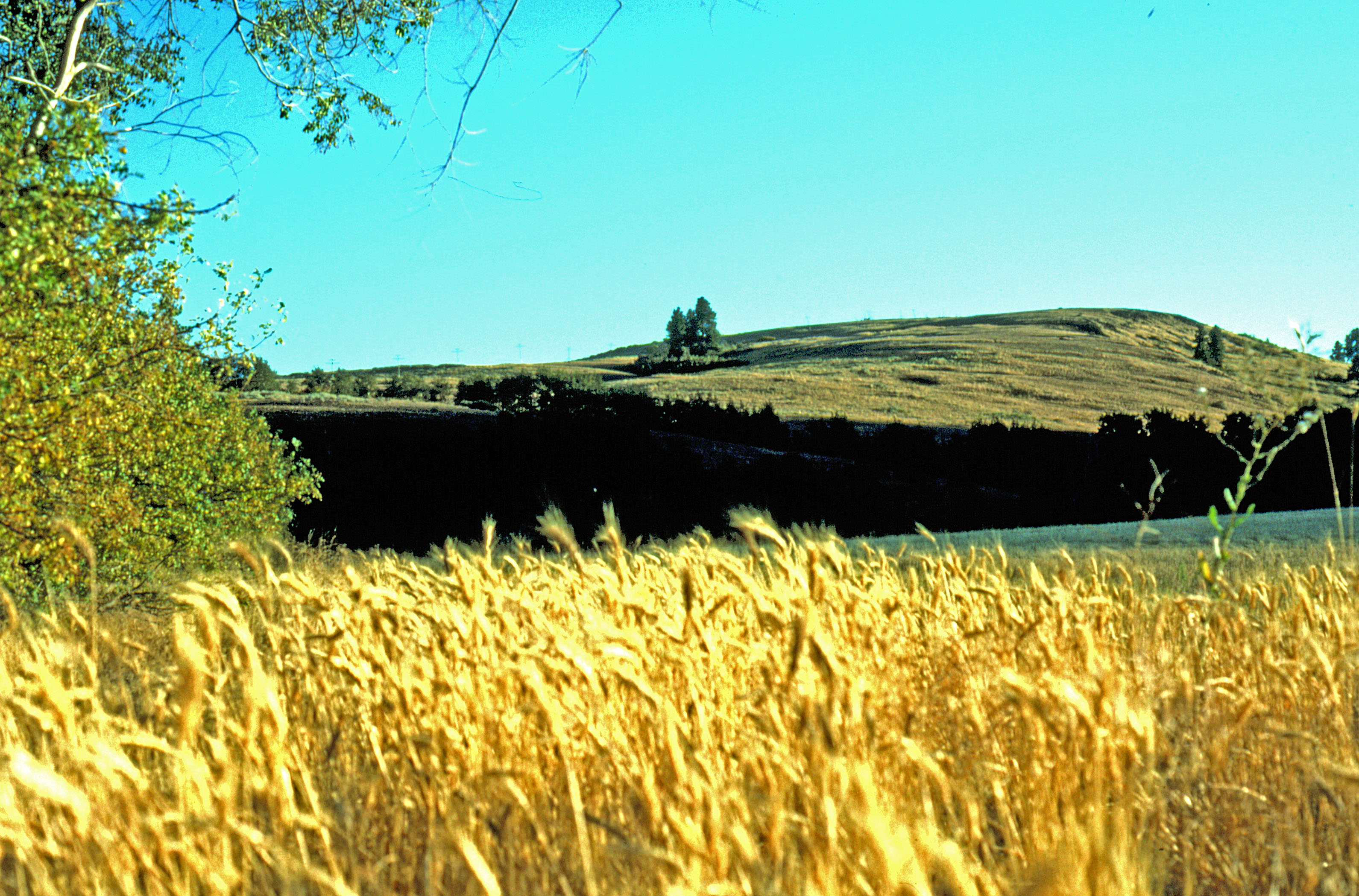 Y: 1984 D: ranch, view across wheat fields to tv hill, before harvest, 1984 C: ranch, view across wheat fields to tv hill, before harvest, 1984. photo: from 0.9x1.3 color transparency; 2400 ppi.