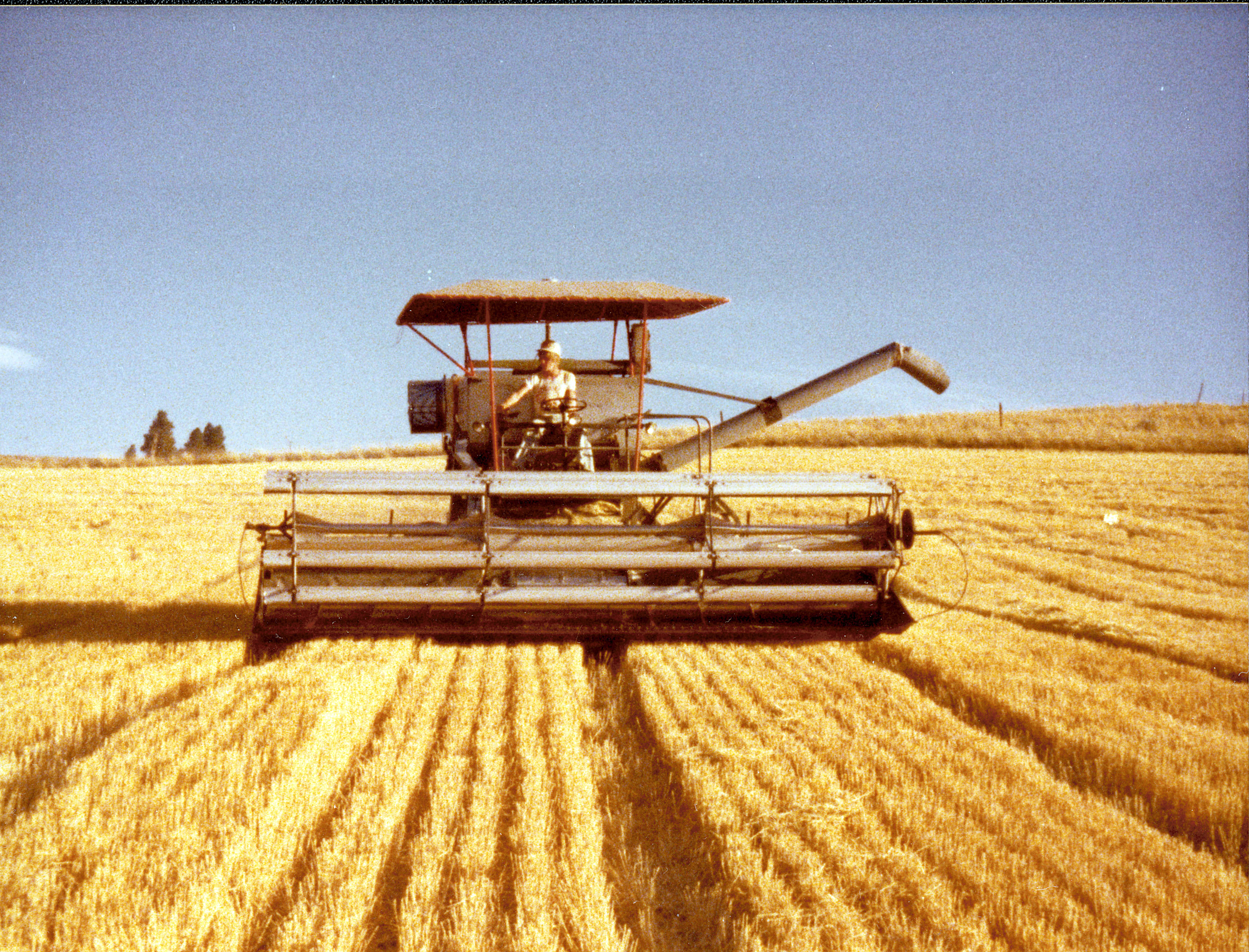 Y: ca 1978 D: ranch, combine, harvesting, ca 1978 C: ranch, combine, harvesting, ca 1978. photo: from 3.3x4.4 color print; 800 ppi.