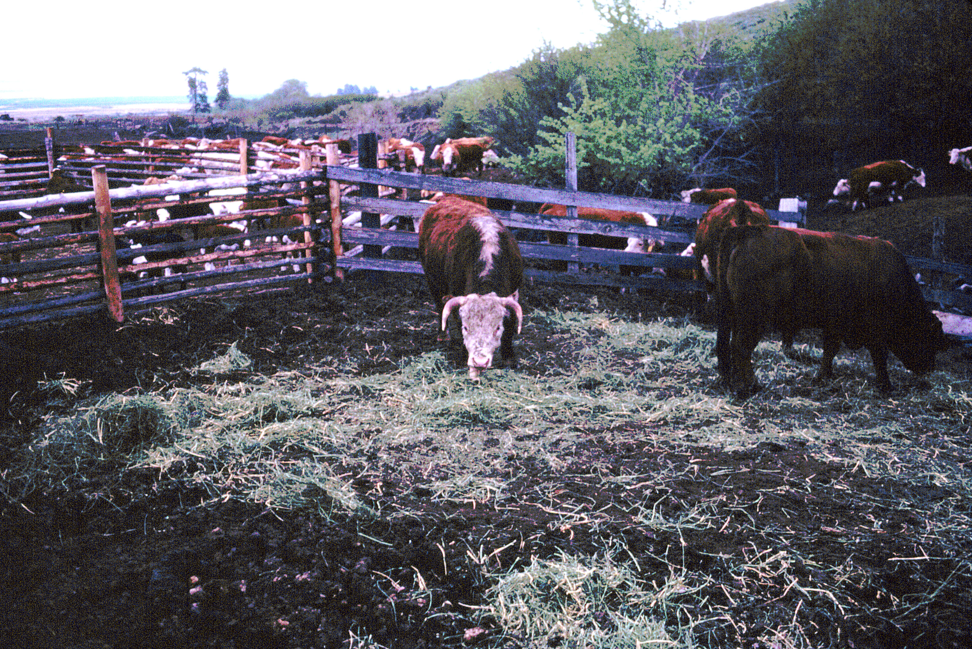 Y: 1983 D: ranch, corrals, cattle, hereford bull, spring 1983 C: ranch, corrals, cattle, hereford bull, spring 1983. photo: from 0.9x1.3 color transparency; 2400 ppi.
